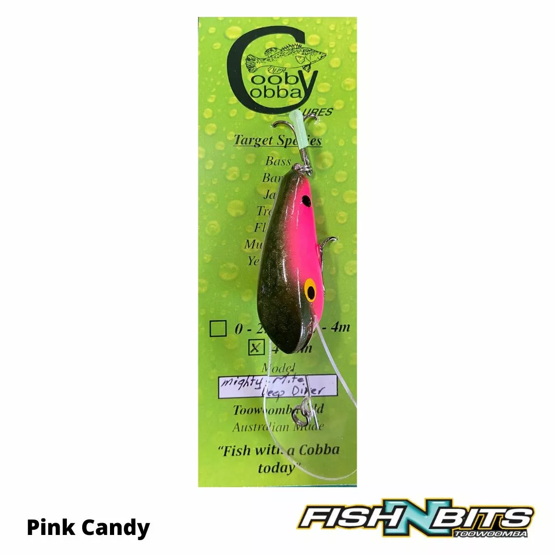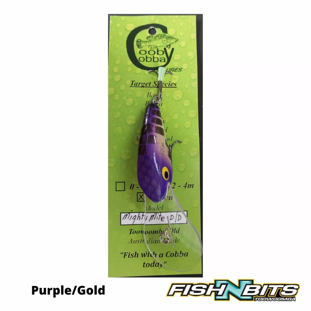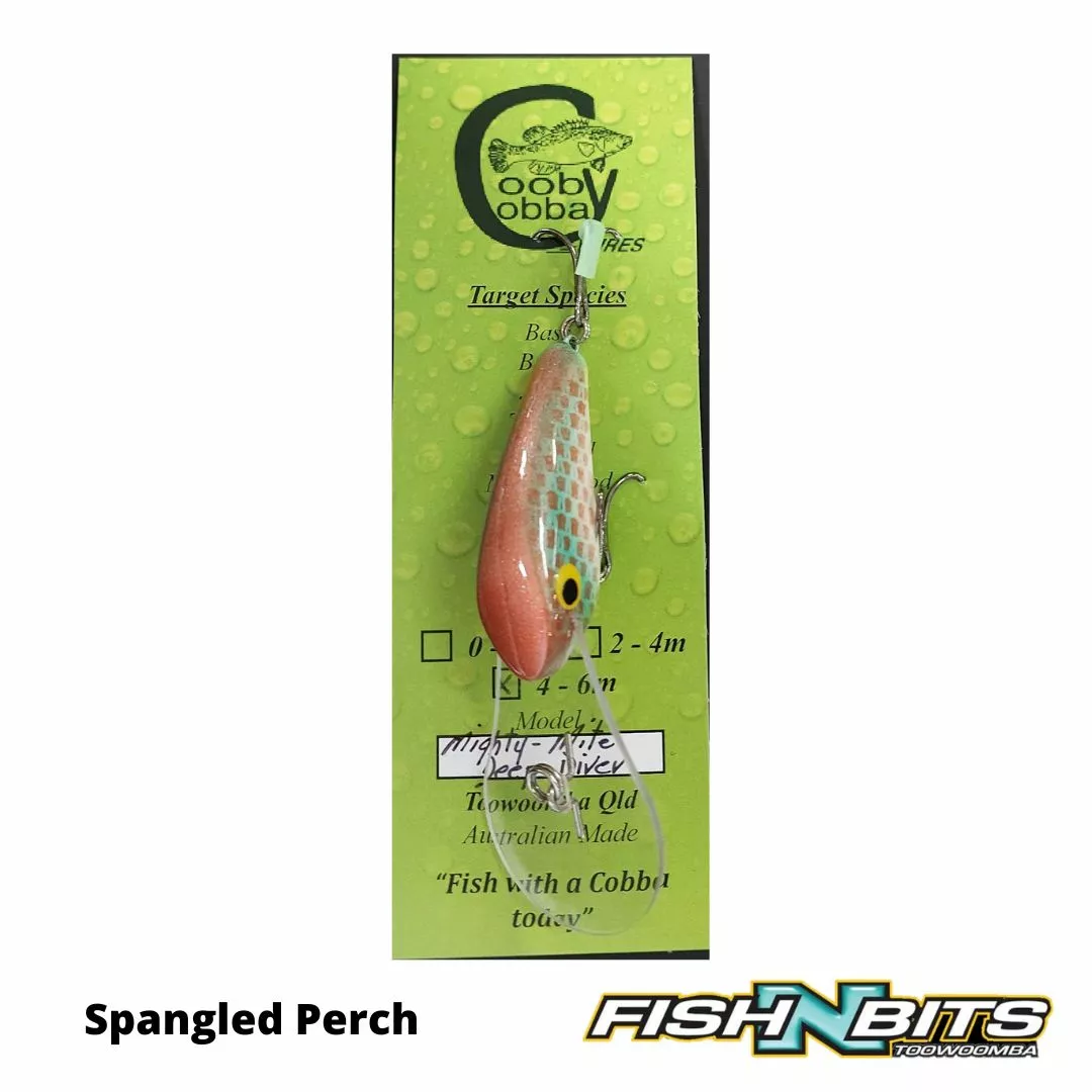 All New Cooby Cobba 55mm Deep Diving “Mighty Mite” Lure, Polyurethane floating lure (slow rise) weighing 10g. Diving to an impressive 7m and proven performer on Murray Cod & Yellowbelly.