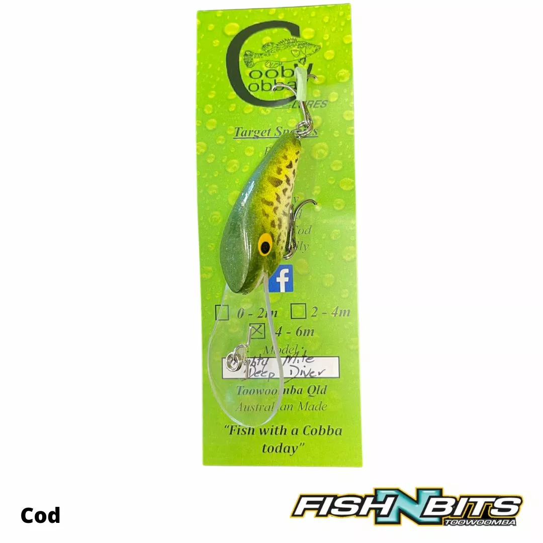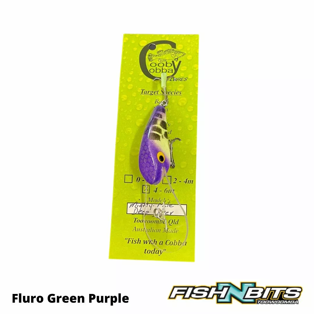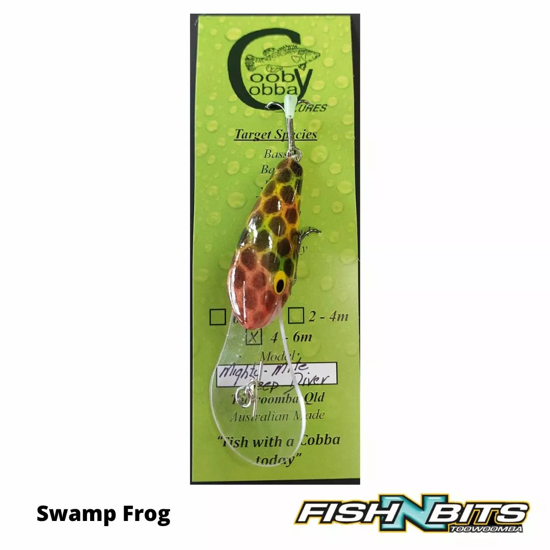 All New Cooby Cobba 55mm Deep Diving “Mighty Mite” Lure, Polyurethane floating lure (slow rise) weighing 10g. Diving to an impressive 7m and proven performer on Murray Cod & Yellowbelly.