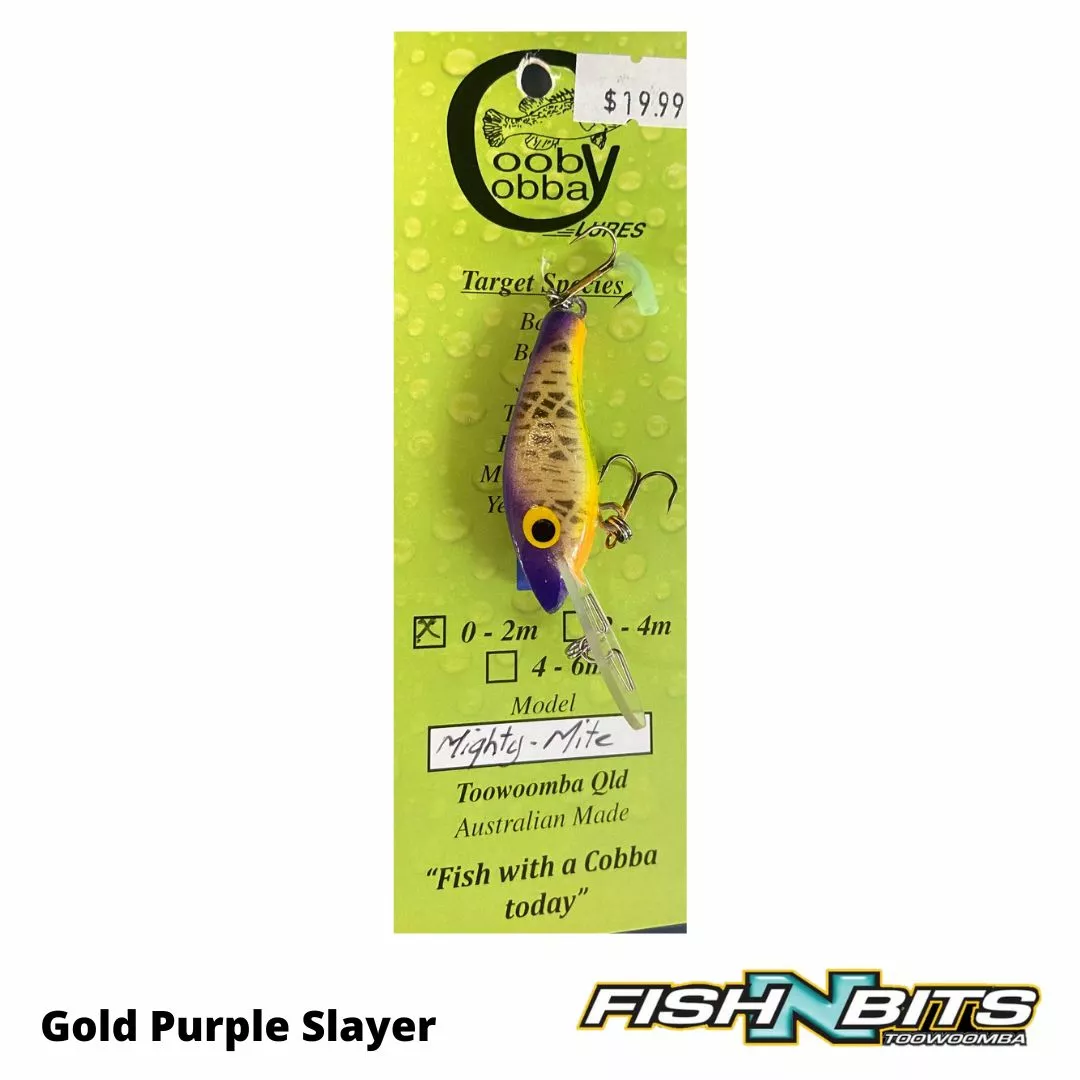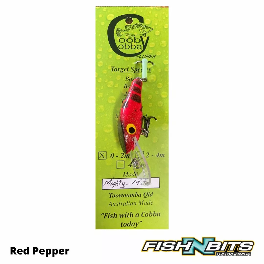 50mm Cooby Cobber Mighty Mite – Moulded (Polyurethane) Solid Body floating lure built strong and rugged to handle our native species,this lures has proved the go to lure at Cooby dam on yellowbelly and small cod to 70cm. Diving to around 2m and 8g this lure is ideal for fishing shallow weed beds. A perfect sized morsel for our natives such as bass, yellows, cod and also designed to target flathead over shallow sand flats. Great Action.