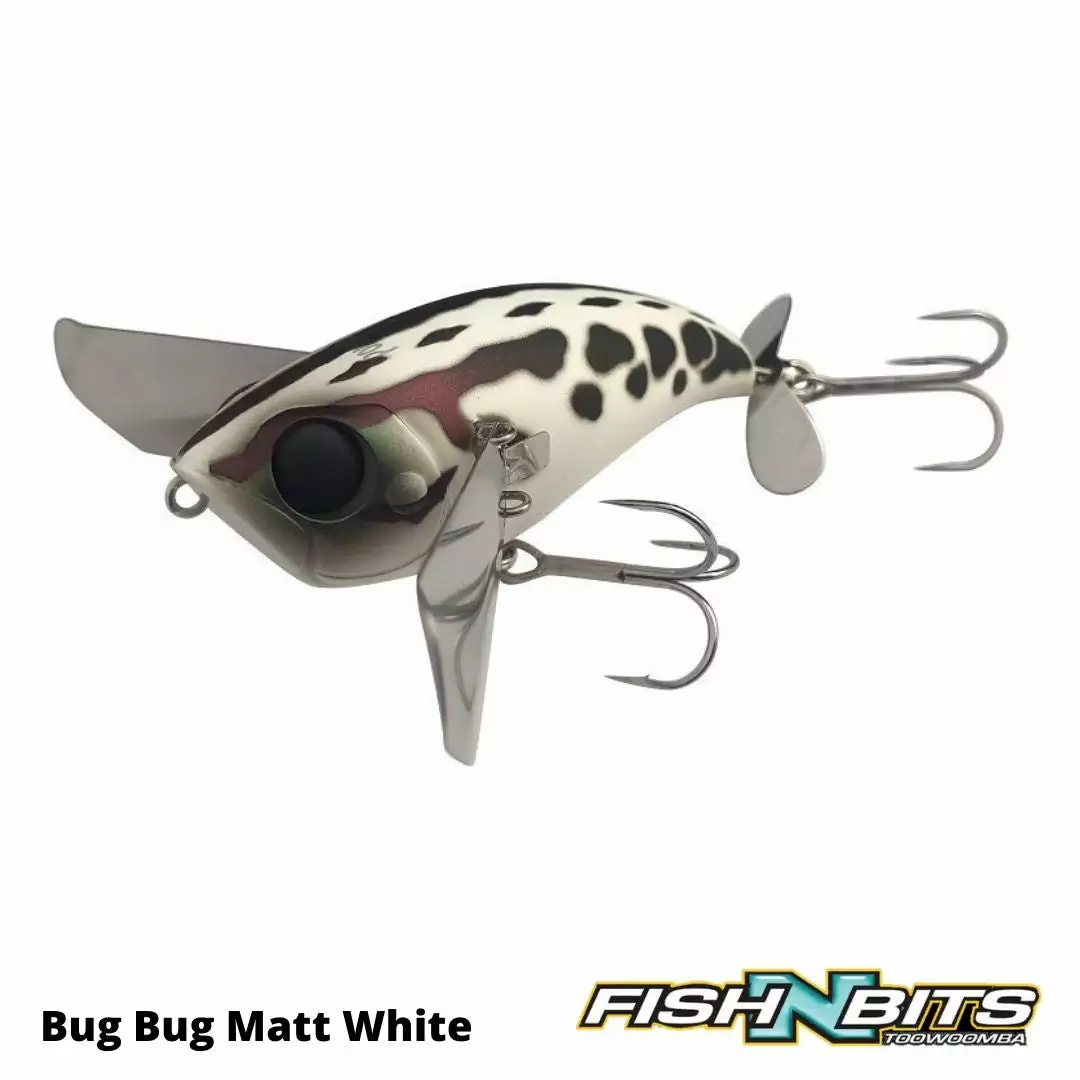The Jackall Pompadour jnr is a no brainer of a surface lure. You can fish it as simply as cast and slow retrieve or twitching it under trees or above snags. The rattling internals imitate a cicada or chattering bird. The buzz blade on the rear is for insect and bubble attractant. The wings pull the whole scenario together with their freestyle action to form possibly the coolest action and noisiest topwater lure you’ll ever use. “Cod and Bass slayer from heaven”.